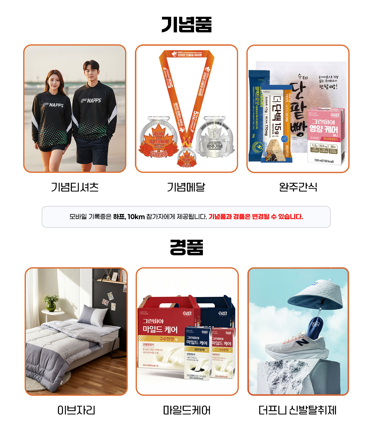 [기념티셔츠, 완주메달, 기록증, 간식(빵,음료수)]